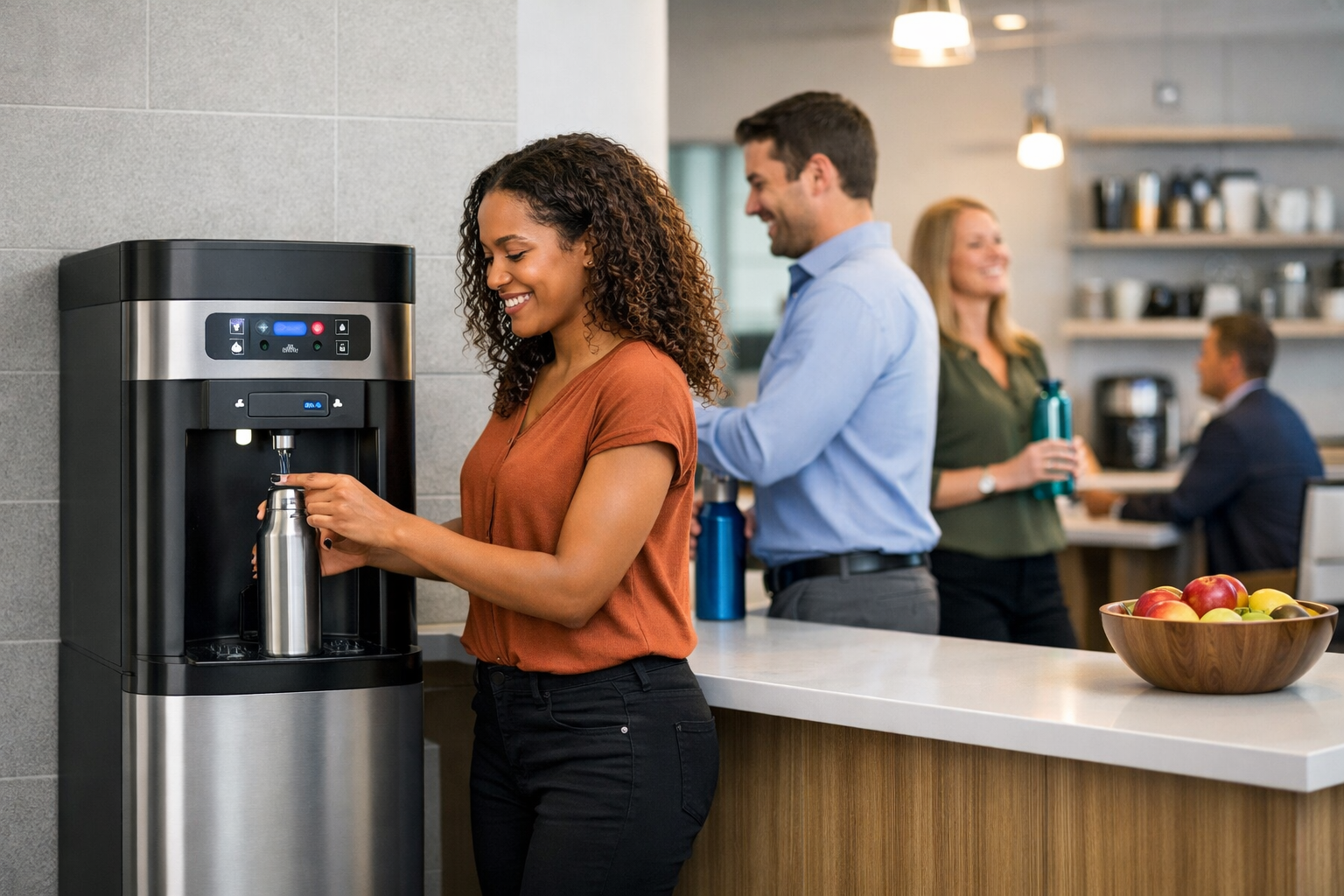 Many office installs can be completed quickly once placement and connections are confirmed. The timeline depends on water line access, electrical needs, and whether you’re adding ice or additional features.